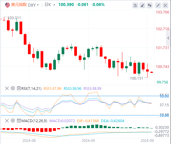 美元指数:截止发稿,美元指数交投于100.39附近。美元指数从盘中低点反弹,因为交易员对好于预期的密歇根消费者信心报告做出反应,该报告显示消费者信心指数从8月份的67.9上升至9月份的70.1。技术面上,如果美元指数回到100.50水平上方,它将朝着最近的阻力位100.80–101.00区间前进。