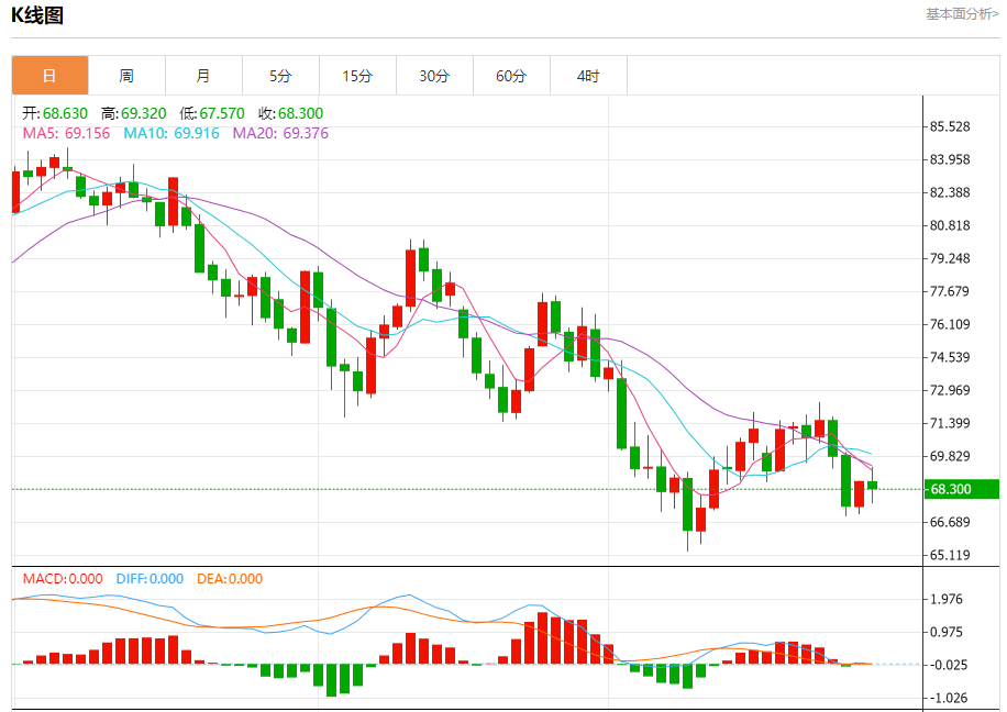 原油市场:截止北京时间20:20,美油上涨,现报68.310,涨幅0.19%。纽市盘前,原油价格在今天早上上涨后,现在显示出看跌倾向,接近关键支撑68.55美元,价格需要在此水平上方巩固,以保持今天的看涨趋势,最初目标是70.44美元,提醒你突破它将把价格推至71.95美元作为下一个目标,而突破68.55美元代表着转向下跌和在日内建立熊市的关键。