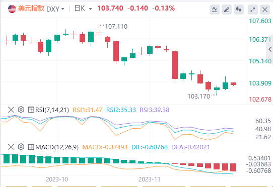 美元在交易日出现一些疲软,主要外汇市场出现上涨。日本股市因劳动节休市,美国股市也将于周四因感恩节休市。截至目前,美元报价103.74。