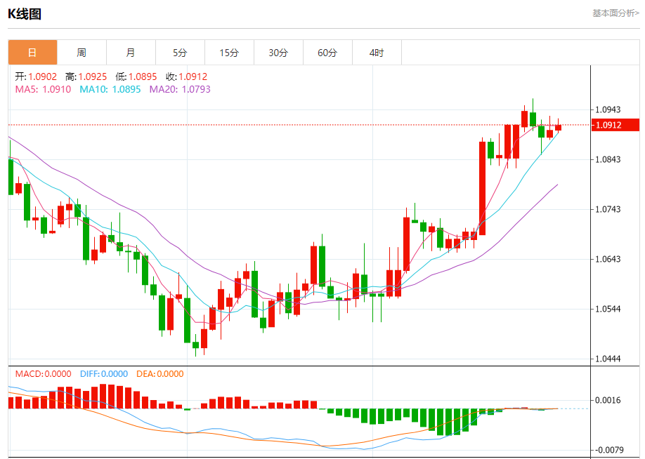 欧元/美元:截止北京时间21:25,欧元/美元上涨,现报1.0913,涨幅0.09%。纽市盘前,自上午以来,欧元兑美元汇率没有表现出任何强劲的走势,继续在1.0900关口附近波动,因此,今天的预期看涨趋势没有改变,这取决于1.0860上方的价格稳定性,而目标是1.0960,并在突破前一水平后延伸至1.1080。