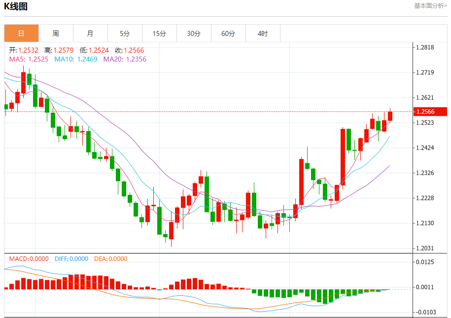 英镑/美元:截止北京时间21:25,英镑/美元上涨,现报1.2567,涨幅0.27%。纽市盘前,GBPUSD货币对显示轻微的正交易,再次接近1.2590水平,等待更多的上涨超过这一水平,并打开通往1.2720的道路,作为下一个正目标。