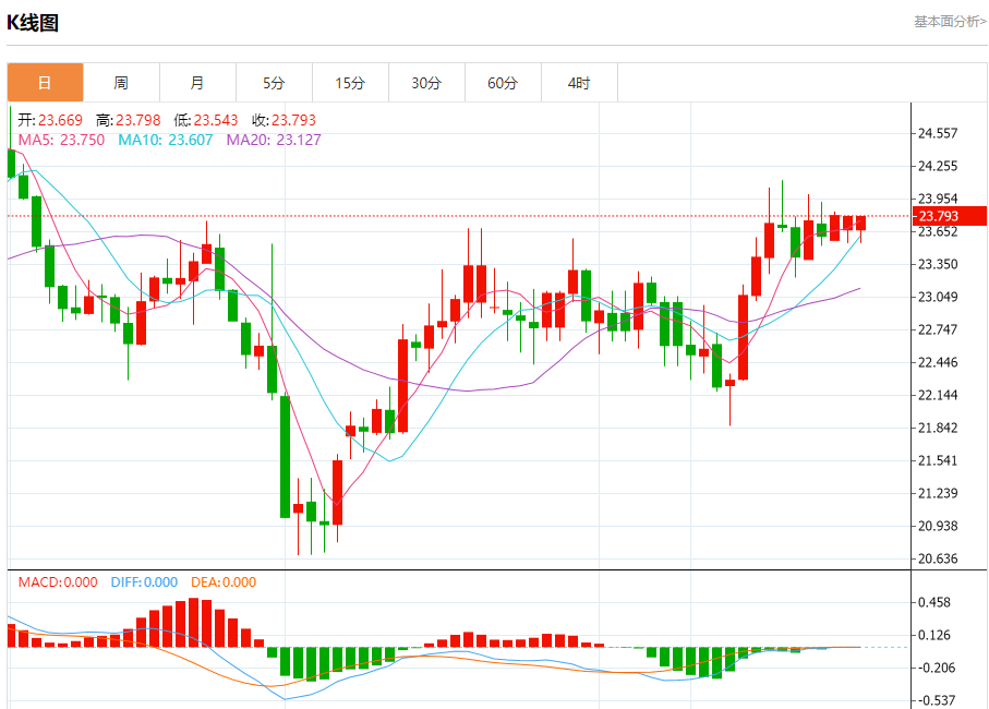 现货白银:截止北京时间21:25,现货白银下跌,现报23.793,跌幅0.04%。纽市盘前,白银价格仍然停留在23.50支撑和23.70阻力所代表的关键水平之间,这使我们的中性立场一直有效,等待突破其中一个水平,以明确检测其下一个目标。