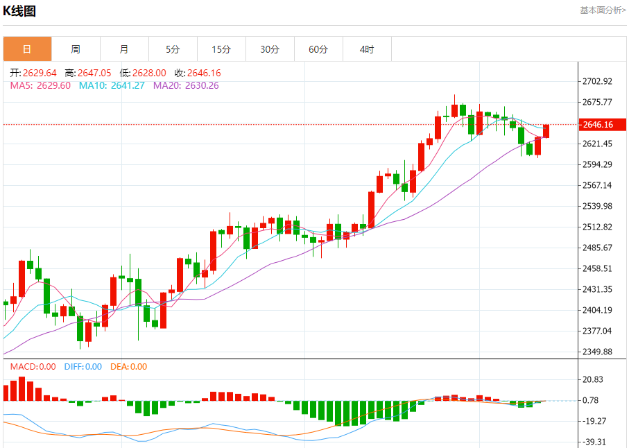 现货黄金:截止北京时间20:20,现货黄金上涨,现报2646.16,涨幅0.62%。纽市盘前,金价停留在2635.06美元上方,以保持今天的看涨趋势,目标是2668.00美元,其次是2688.00美元。
