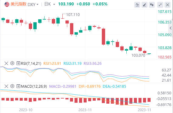 周一,美元指数继续下挫,其在美盘- -度跌至103.18的日内低点,截至目前,美元报价103.10。