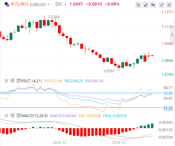 欧元/美元周一攀升至1.0900以上的两周多来最高水平,但抹去涨幅,收盘持平。周二早盘,该货币对在1.0880附近横盘波动。