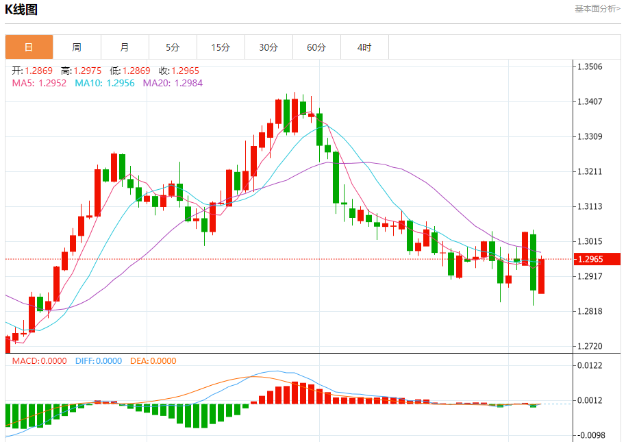 英镑/美元:截止北京时间21:20,英镑/美元上涨,现报1.2967,涨幅0.67%。纽市盘前,GBPUSD价格显示看涨倾向,以测试对价格形成良好阻力的EMA50,等待恢复负面交易以突破1.2866美元,并确认向1.2735美元延伸熊市修正。