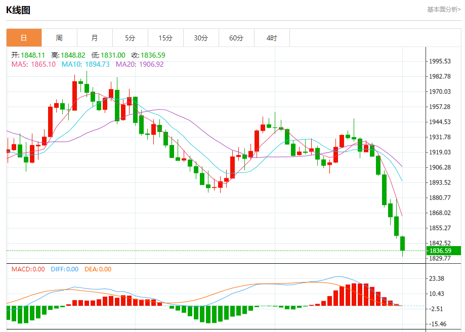 现货黄金:截止北京时间20:21,现货黄金下跌,现报1836.23,跌幅0.62%。纽市盘前,黄金价格恢复其负面交易,以打破1839.00,并试图保持在其下方,加强了对今天剩余时间继续看跌趋势的预期,为我们走向下一个目标1809.35开辟了道路。
