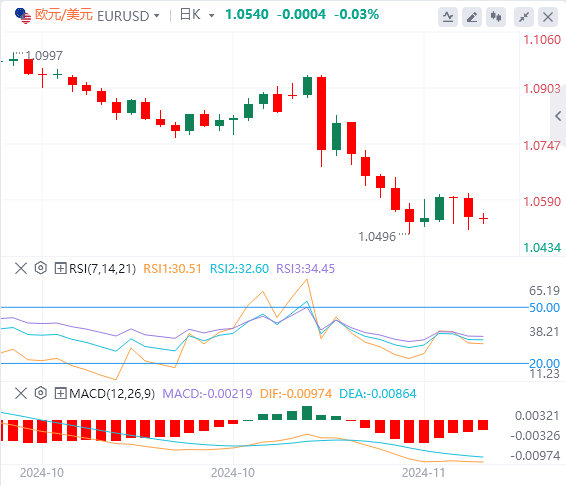 11月21日,周四欧市盘中,美元指数徘徊在106.5附近。