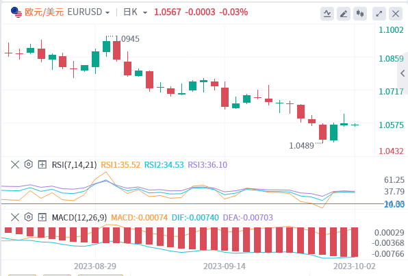 欧元:截止发稿,欧元/美元徘徊于1.0567附近。上周五欧元/美元上涨,收报1.0573,涨幅0.08%。各国央行月初公布货币政策决定后,金融市场处在风险规避模式,尽管大多数政策制定者按兵不动,但他们重申通胀风险仍然很高,利率应在更长时间内保持较高水平,以控制物价压力。技术面上,汇价上行的初步阻力位于1.0594,进一步阻力位于1.0630,关键阻力位于1.0682;汇价下行的初步支撑位于1.0505,进一步支撑位于1.0453,更关键支撑位于1.0417。