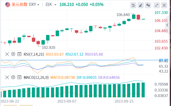 美元指数:截止发稿,美元指数交投于106.21附近。美联储的官员们继续在新闻专线上横冲直撞。芝加哥联储主席奥斯坦·古尔斯比表示,如果美国央行认为在通胀问题上缺乏进展,它将不得不进一步加息,同时表示他还没有决定在下次会议上做什么。与此同时,里士满的美联储主席托马斯·巴金表示,最近五个月的通胀数据令人鼓舞,尽管他评论说,现在说下一步的货币政策还为时过早。技术面上,RSI技术指标上,呈现新的下降趋势。在106.43之下,看跌,目标价位为106,然后为105.75。