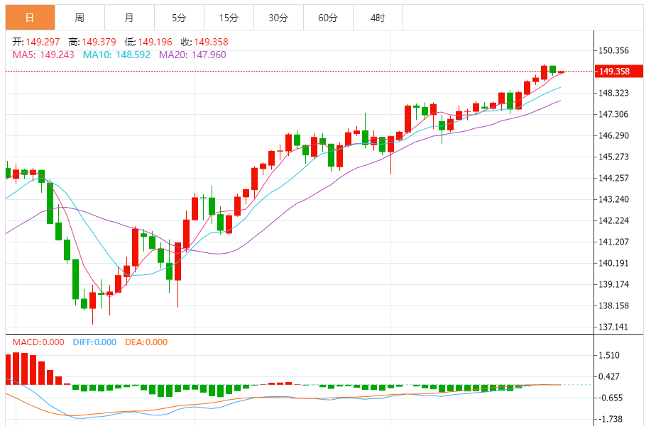 日元:美元/日元下跌,收报149.305,跌幅0.21%。技术面上,汇价上行的初步阻力位于149.516,进一步阻力位149.797,关键阻力位于149.984;汇价下行的初步支撑位于148.048,进一步支撑位于148.861,更关键支撑位于148.58。