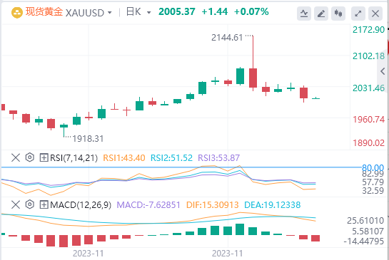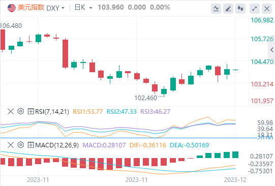 美元指数:截止发稿,美元指数交投于103.96附近。美国10月的通胀数据温和,助长了对美联储11月初立场的鸽派预期。然而,美联储官员考虑进一步紧缩的信号正在抑制这些预期,强劲的劳动力市场数据重申了该行的这一谨慎立场,该行要求提供经济降温的进一步证据。即将公布的11月通胀数据和下周的美联储会议将是美元短期走势的关键决定因素。技术面上,日线图上的指标反映了美元的短期矛盾格局。RSI的位置处于正斜率,尽管处于负值区域。这标志着购买势头不断增强,但还不足以带来决定性的复苏。另一方面,MACD指标的直方图用绿色条描绘了类似的画面,这表明抛售压力正在下降。