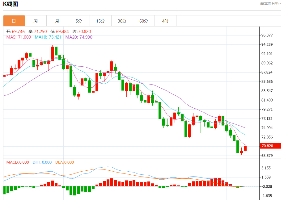 原油市场:截止北京时间21:20,美油上涨,现报70.839,涨幅1.74%。纽市盘前,原油价格以额外的积极性交易,以攻击70.50水平,但它再次回到低于70.50的水平交易,以保持今天的熊市趋势情景,主要目标是67.04区域,考虑到确认突破70.50将停止预期的下跌,并将价格推至72.40,然后是73.73水平,作为下一个主要站。