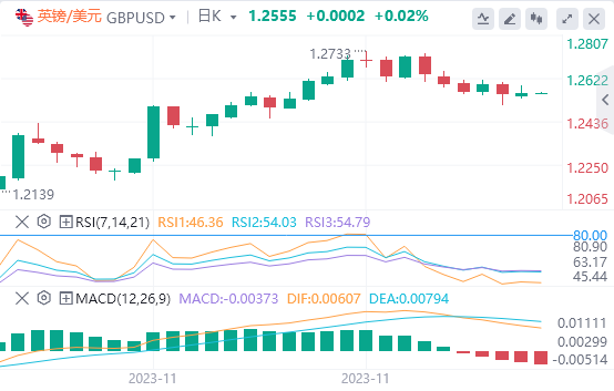 英镑:截止发稿,英镑/美元徘徊于1.2555附近。英镑/美元价格走势依然低迷,交易员正在等待周二公布的美国通胀数据。11月的消费者价格指数(CPI)预计将从0%上升到0.2%,而按年计算,预计将从3.2%下降到3.1%。不包括波动性项目,所谓的核心CPI预计将从0.2%上升到0.3%;每年保持4%不变。昨日英镑/美元上涨,收报1.2554,跌幅0.06%。技术面上,汇价上行的初步阻力位于1.2588,进一步阻力位于1.2623,关键阻力位于1.2658;汇价下行的初步支撑位于1.2519,进一步支撑位于1.2485,更关键支撑位于1.2450。