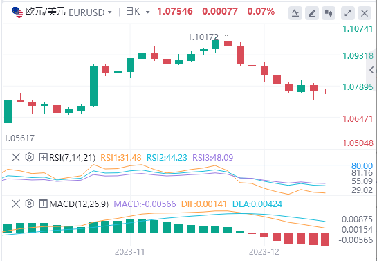 欧元/美元 上周五触及 1.0730 以下的三周来最低水平,并最终收跌。周一早盘,该货币对巩固了前一周的跌势,交投于 1.0750 以上。