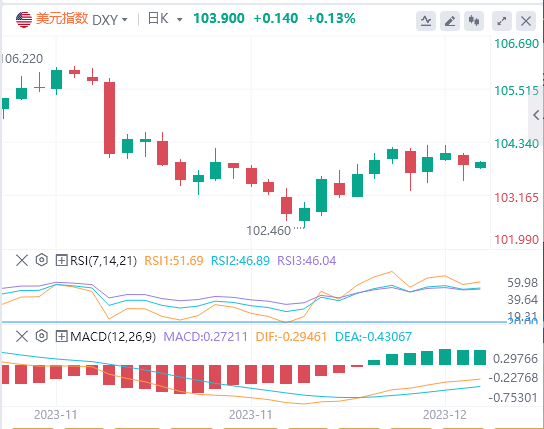 周二,美国11月CP|环比增速意外加快打击了市场的降息预期,美债收益率盘中短线拉升,中长期美债收益率在30年期美债标售结果公布后重新转跌,10年期美债收益率收报4.202%;对美联储政策利率更敏感的两年期美债收益率收报4.735%。美元指数在CP|数据公布后刷新日高,但随后回吐涨幅,截至目前,美元报价103.90。