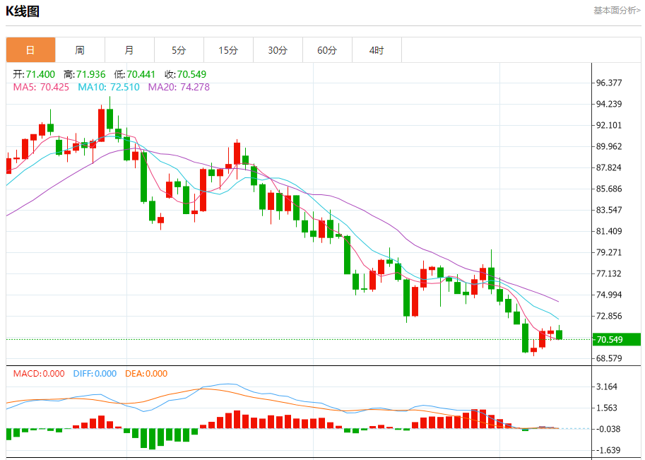 原油市场:截止北京时间21:20,美油下跌,现报70.531,跌幅1.19%。纽市盘前,原油价格显示出一些轻微的看跌倾向,以测试71.00关口,受随机利空影响,等待获得积极的动机,以帮助推动价格恢复预期的看涨趋势,这取决于价格稳定在70.50上方,而其下一个主要目标位于73.73。