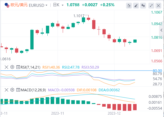 欧元/美元本周第一个交易日收盘时几乎没有变化,周二早些时候开始向1.0800逼近。