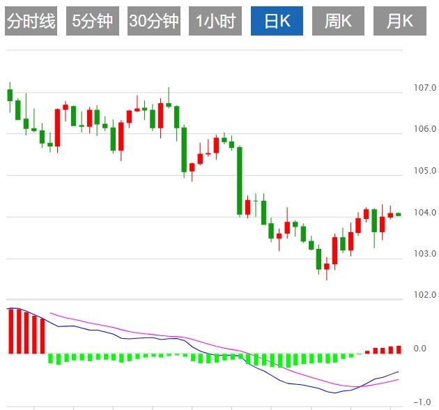 美元指数:截止发稿,美元指数走低,现报103.92,跌幅0.04%。欧市盘前,美元指数跌破104关口,强劲的劳动力市场信号和降温的通胀表明美国经济的不一致。尽管有这些指标,美联储官员仍倾向于谨慎立场,警告将进一步收紧政策。周二的通胀数据以及周三的美联储新经济和利率预测将是市场继续下一步决策预期的关键,并将决定美元价格动态的步伐。