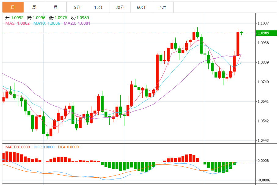 欧元:欧元/美元上涨,收报1.0992,涨幅1.09%。技术面上,汇价上行的初步阻力位于1.1044,进一步阻力位于1.1097,关键阻力位于1.1186;汇价下行的初步支撑位于1.0902,进一步支撑位于1.0814,更关键支撑位于1.0760。