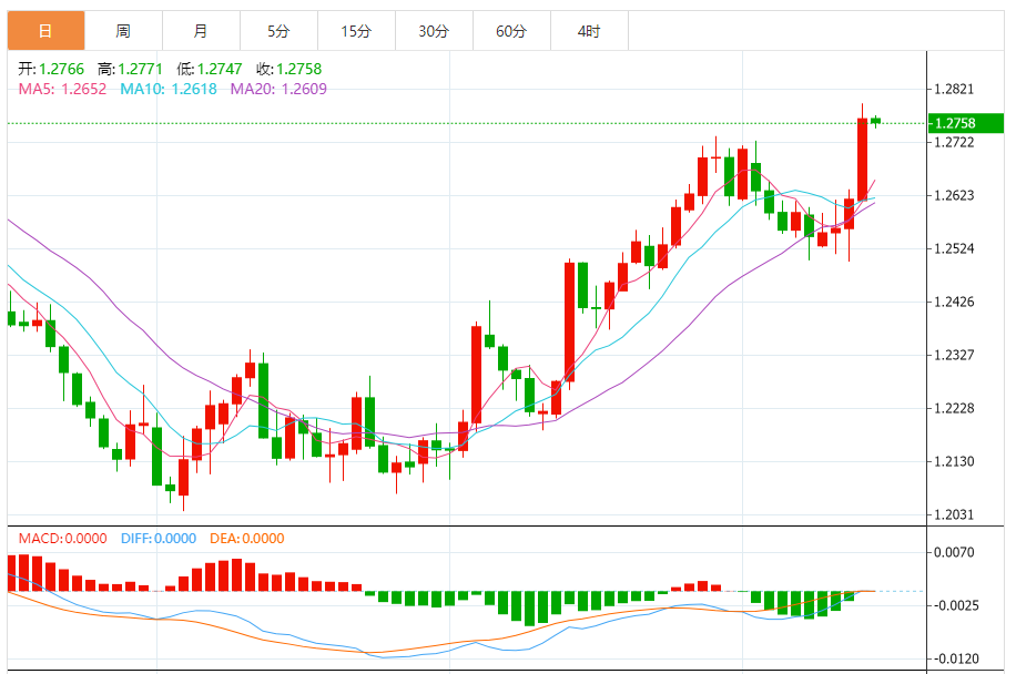 英镑:英镑/美元上涨,收报1.2766,涨幅1.18%。技术面上,汇价上行的初步阻力位于1.2834,进一步阻力位于1.2905,关键阻力位于1.3016;汇价下行的初步支撑位于1.2652,进一步支撑位于1.2541,更关键支撑位于1.2470。