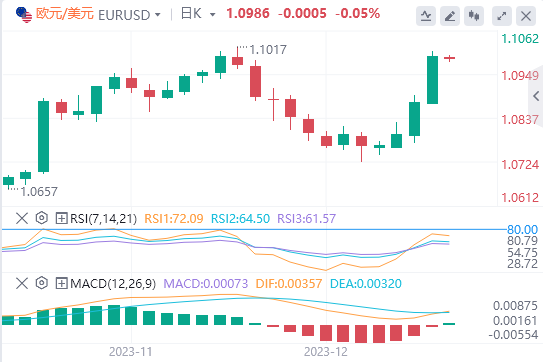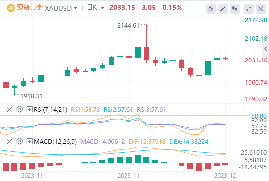 美元指数:截止发稿,美元指数交投于102.05附近。美元跌至101.80,为8月以来的最低点。美联储出人意料地暗示2024年将三次降息,这对美国国债收益率和美元造成了沉重影响。在2023年的上一次美联储会议上,该行对通胀数据的降温表示欢迎,修订后的点图表明,美联储理事在2024年不会加息。此外,他们预测将有75个基点的宽松政策。这意味着市场预期与该行的立场一致,这一立场受到了市场的欢呼,因为它助长了流动风险。技术面上,MACD直方图显示红色条线上升,这是一个通常与看跌势头相关的信号,而RSI接近超卖条件,进一步证实了空头控制价格走势。此外,SMA位于20、100和200天SMA下方,表明在更大的背景下存在主导的看跌倾向。这表明,尽管超卖RSI暗示暂时缓解,但整体抛售压力依然强劲,空头继续决定价格走势。