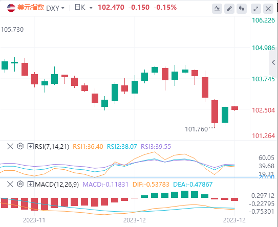 上周美联储在会议上实现鸽派转向,称货币政策收紧可能已经结束,降息的讨论即将“进入视线”。而欧洲央行和英国央行依然采取了强硬立场,这导致美元本周录得五个月来最大单周跌幅。周二日本央行将举行利率决议,我们需要观察的点是:日本央行是否会暗示有意放弃将利率维持在最低水平的政策。