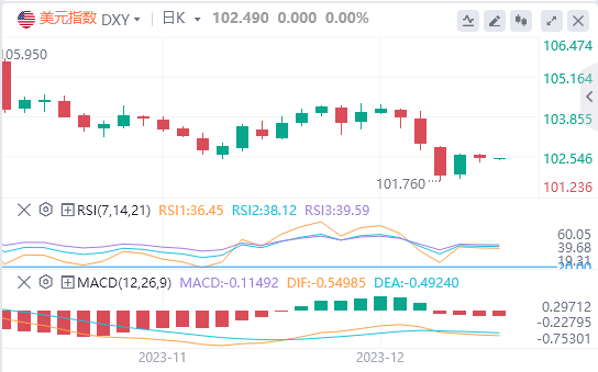 美元指数:截止发稿,美元指数交投于102.49附近。美元在本周早些时候略有下跌,在周五公布个人消费支出(PCE)价格指数数据之前做好了准备,这是美联储(Fed)首选的通胀指标。通胀数据将为投资者提供更多见解,让他们继续押注美联储的下一步决策。技术面上,日线图上的指标反映出丁香园的销售势头更强。RSI处于负值区域,向下倾斜,表明该指数具有内在的空头性。MACD的红条进一步证实了这种看跌势头。相对于20、100和200天SMA的位置也突显了空头的持续主导地位。所有这些SMA下方的美元交易暗示着强烈的向下倾向,肯定了看跌的基调。