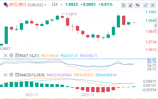 欧元:截止发稿,欧元/美元徘徊于1.0923附近。欧元/美元周一上涨,收报1.0923,涨幅0.27%。投资者将从11月的欧元区消费者价格协调指数(HICP)数据中获得更多线索,该数据预计将保持不变,为月环比-0.5%,而核心HICP预计将保持在月环比0.6%。技术面上,汇价上行的初步阻力位于1.0939,进一步阻力位于1.0955,关键阻力位于1.0976;汇价下行的初步支撑位于1.0900,进一步支撑位于1.0876,更关键支撑位于1.0860。