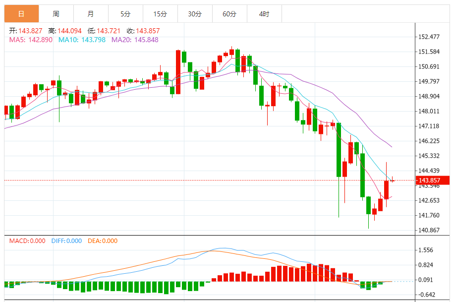 日元:美元/日元上涨,收报143.827,涨幅0.75%。技术面上,汇价上行的初步阻力位于145.037,进一步阻力位146.34,关键阻力位于147.738;汇价下行的初步支撑位于142.336,进一步支撑位于140.938,更关键支撑位于139.635。