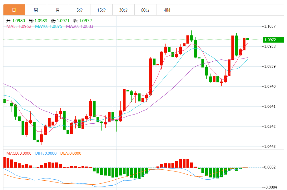 欧元:欧元/美元上涨,收报1.0980,涨幅0.52%。技术面上,汇价上行的初步阻力位于1.1008,进一步阻力位于1.1036,关键阻力位于1.1084;汇价下行的初步支撑位于1.0931,进一步支撑位于1.0883,更关键支撑位于1.0855。
