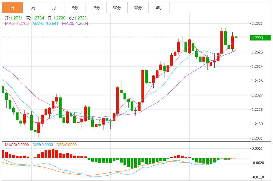 英镑:英镑/美元上涨,收报1.2731,涨幅0.67%。技术面上,汇价上行的初步阻力位于1.2784,进一步阻力位于1.2839,关键阻力位于1.2917;汇价下行的初步支撑位于1.2652,进一步支撑位于1.2574,更关键支撑位于1.2519。