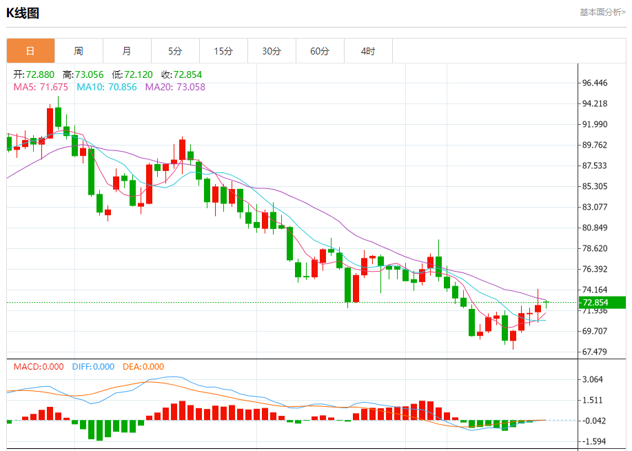 原油市场:截止北京时间21:25,美油上涨,现报72.856,涨幅0.41%。纽市盘前,原油价格显示新的负面交易,试图恢复今天预期的熊市趋势,由随机负面因素推动,在图表上出现的熊市通道内组织,提醒您我们的目标从70.40开始,在突破前一水平后延伸到67.04,而实现它需要持有低于73.73,最重要的是低于74.20。