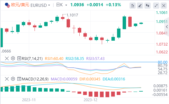 欧元/美元周一小幅收涨,但未能凝聚方向性动能。周二欧洲早盘,该货币对继续在1.0900以上的狭窄通道内波动。欧盟统计局预计将确认11月HICP通膨年率为2.4%。
