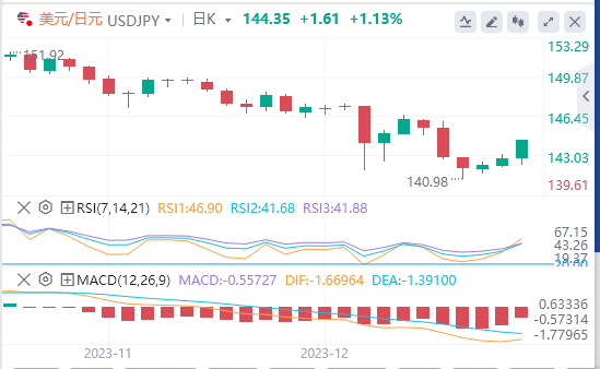 但植田和男随后表示,明年将看到工资方面的积极评论,预计到2025财年,潜在通胀率逐渐上升并接近目标的可能性正在上升。受这一言论影响,美元/日元短线大跌近130点,最低触及142.47。