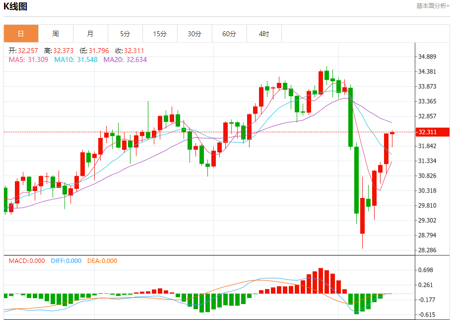 现货白银:截止北京时间20:18,现货白银上涨,现报32.318,涨幅0.17%。纽市盘前,在最近的盘中交易中,白银价格强劲上涨,以确认突破32.00美元的当前阻力位,这一上涨是在价格成功解除其超买条件(由(RSI)产生)之后,在短期内沿趋势线的牛市修正波占主导地位的情况下出现的。