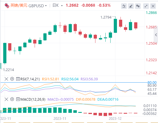 英国国家统计局周三发布报告称,以消费者价格指数(CPI)变化衡量的英国通胀率从10月份的4.6%下降到11月份3.9%。按月计算,CPI月率下降了0.2%。核心CPI(不包括波动较大的食品和能源价格)增长了5.1%,与10月份5.7%的增幅相比大幅下降。通胀数据低于预期,英镑面临看跌压力。截至记者发稿时,英镑/美元在1.2700下方的负区域交投。