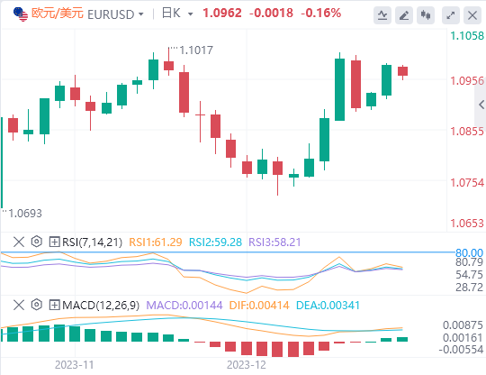 欧洲央行(ECB)官员的鹰派言论帮助欧元兑其他货币保持弹性。欧元/美元周二连续第二日收涨,并在周三早些时候向1.0950回调之前接近1.1000。