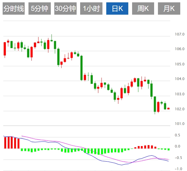 美元指数:截止发稿,美元指数走高,现报102.26,涨幅0.14%。欧市盘前,美元指数(DXY)在连续两天下跌后反弹,周三亚洲时段交投于102.20附近。然而,由于美联储(Fed)对利率轨迹的鸽派前景,美元指数面临挑战。投资者预计美联储将在2024年初实施降息。