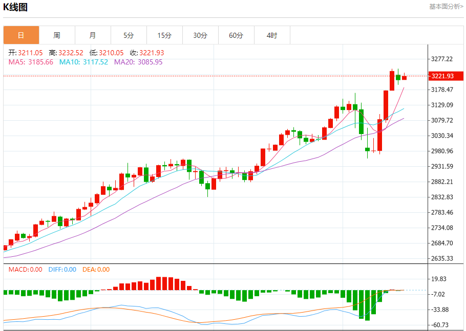 现货黄金:截止北京时间20:16,现货黄金上涨,现报3222.75,涨幅0.38%。纽市盘前,金价在最后一个交易日下跌,价格试图获得积极的动力,这有助于复苏和再次上涨,其中主要的看涨趋势占主导地位,有积极的信号来自(RSI)和3.200美元以上的交易稳定性。