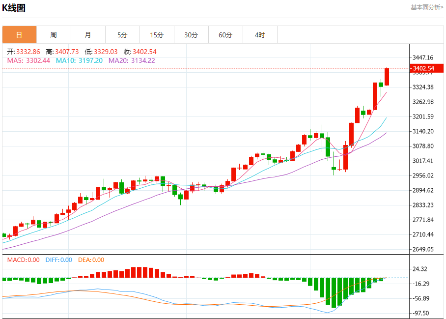 现货黄金:截止北京时间20:22,现货黄金上涨,现报3402.71,涨幅2.27%。纽市盘前,金价在最近的盘中交易中持续上行,突破3,375美元,主要看涨趋势占主导地位,短期内伴随着大幅小幅看涨趋势,受到(RSI)积极信号的支持,尽管达到了超买区。