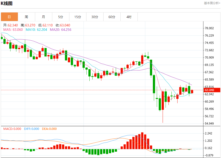 原油市场:截止北京时间20:20,美油上涨,现报63.020,涨幅1.20%。纽市盘前,原油价格依靠EMA50获得一些支撑,关键支撑在61.50美元的稳定性,试图弥补昨天的一些损失,受短期负面技术形态(上升楔形模式)的影响。