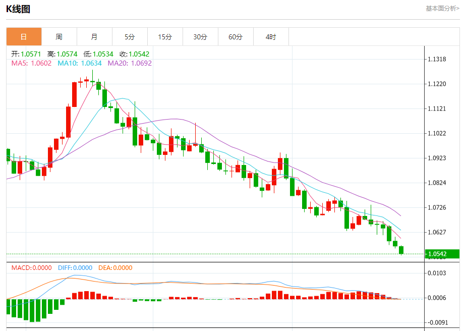 欧元/美元:截止北京时间20:21,欧元/美元下跌,现报1.0542,跌幅0.29%。纽市盘前,欧元对美元平静地向下爬行,等待获得负面动机,协助推动价格继续下跌,实现我们从1.0515开始并延伸到1.0440的负面目标。