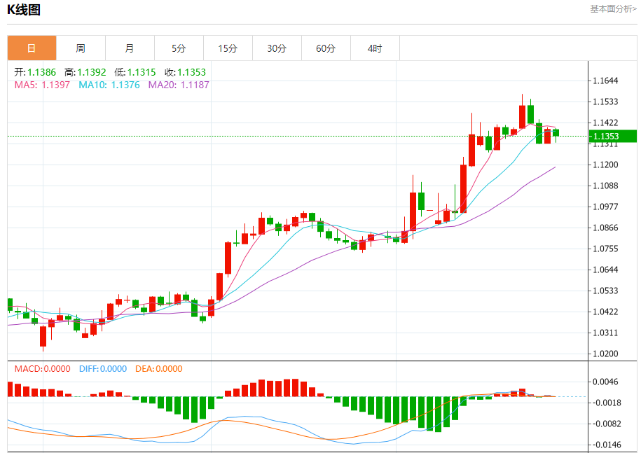 欧元/美元:截止北京时间20:20,欧元/美元下跌,现报1.1355,跌幅0.30%。纽市盘前,欧元兑美元价格在其盘中水平上上涨,弥补了其上午的部分损失,其交易低于EMA50导致的负面压力仍在继续,这是因为熊市修正波占主导地位,并且(RSI)上出现了负面信号。