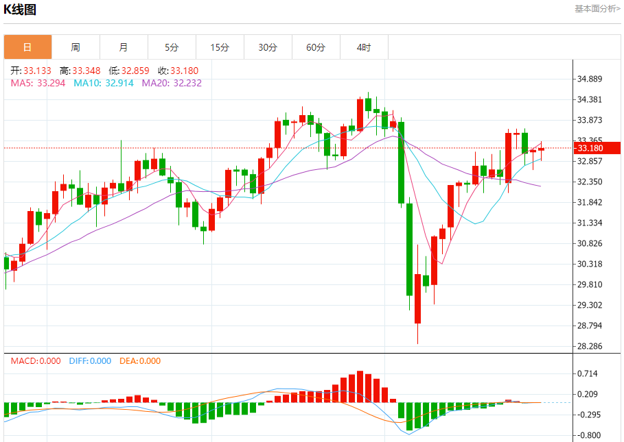 现货白银:截止北京时间20:20,现货白银上涨,现报33.195,涨幅0.19%。纽市盘前,白银价格在依靠EMA50的支撑后,在日内水平上大幅上涨,同时在短期基础上测试一条看涨的斜线,为其反弹提供了积极的动力,另一方面,在达到超买水平后,在(RSI)上出现了负面的重叠信号,这可能会减缓日内上涨。