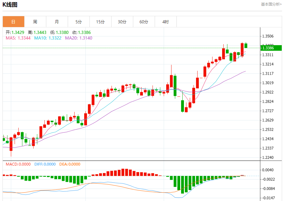 英镑/美元:截止北京时间20:20,英镑/美元下跌,现报1.3387,跌幅0.35%。纽市盘前,GBPUSD在最后一个交易日扩大了涨幅,攻击1.3420的关键阻力,利用了主要看涨趋势的延续及其在短期基础上沿受支撑的斜线交易。