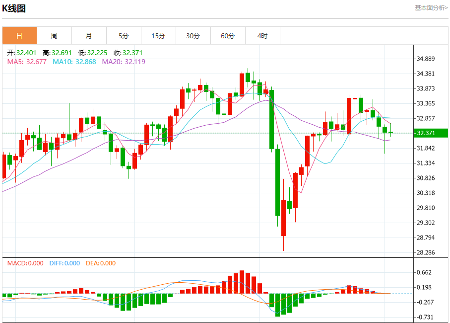 现货白银:截止北京时间20:16,现货白银下跌,现报32.362,跌幅0.04%。纽市盘前,白银在最近的日内水平上下跌,此前稳定在32.70美元的阻力,受因交易低于EMA50而产生的持续负面压力的影响,在达到与价格走势相比夸大的超买水平后,开始形成(RSI)上的负背离,并开始出现负重叠信号。