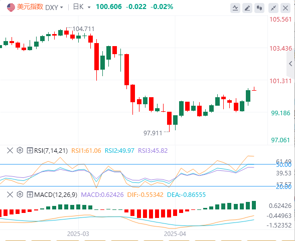 周四,特朗普宣布与英国达成“突破性”贸易协议,美元指数触及4月10日以来的最高读数,截至目前,美元报价100。60。