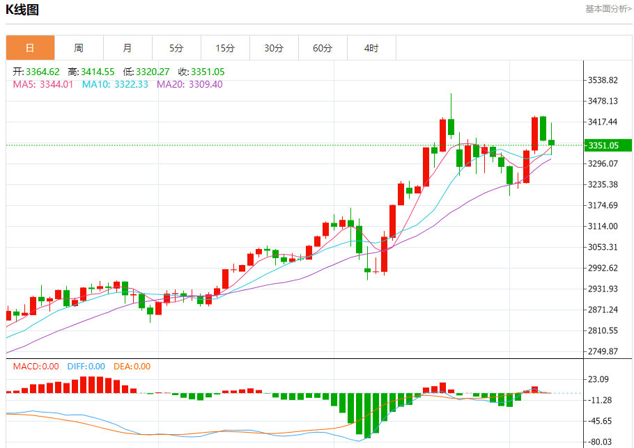 现货黄金:截止北京时间20:20,现货黄金下跌,现报3351.79,跌幅0.37%。纽市盘前,黄金价格在最后一个交易日下跌,以寻找一个上涨的底部作为基础,这可能有助于它获得复苏所需的积极动力,并受到(RSI)负面信号的负面压力,尽管这一大幅下跌,但短期内看涨趋势占主导地位,并沿着一条斜线移动,由于交易位于EMA50上方,正压力仍在继续。