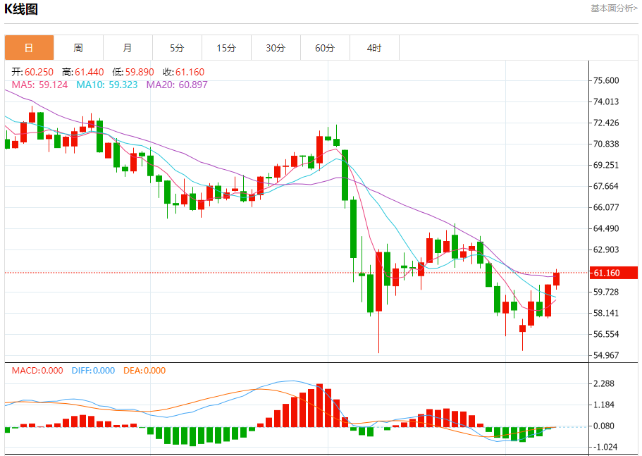 原油市场:截止北京时间20:18,美油上涨,现报61.170,涨幅2.10%。纽市盘前,原油价格在即将到来的盘中交易中上涨,受突破短期主要熊市趋势线的影响,受EAM50上方交易的支撑,EAM 50代表即将到来的交易的动态支撑,试图突破59.65美元的关键阻力位,以宣布牛市修正趋势的延续,另一方面,我们注意到(RSI)在达到超买水平后出现负重叠信号,这可能会减少价格的涨幅。